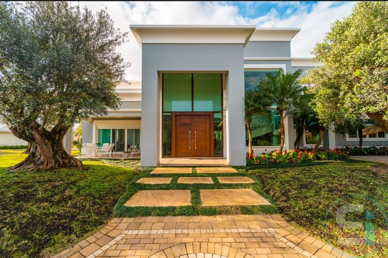 Magnífico sobrado em condomínio fechado, com ótima localização e posição solar. Composto por 05 suítes sendo uma master com closet, tudo devidamente em harmonia, living 03 ambientes todo integrado com aproximadamente 100m², lavabo, estar íntimo ou de TV, jardim de inverno com lago, ampla varanda com 02 ambientes externos junto à piscina de concreto salinizada, espaço gourmet montado, cozinha separada, lavanderia, dependência de empregada completa, abrigo para 04 carros, finamente mobiliada e decorada, tudo isso contemplando um lindo pôr do sol no final do dia.