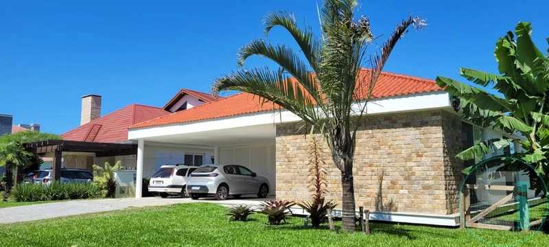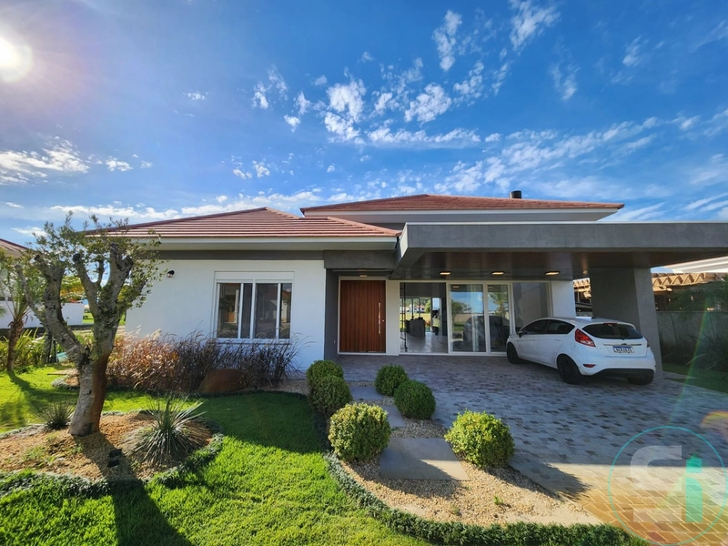Belíssima casa térrea com ótima orientação solar. Composta por 05 suítes sendo 01 máster com 02 banheiros, lavabo duplo, living 03 ambientes, vaga para 02 carros, paisagismo, piscina de concreto.