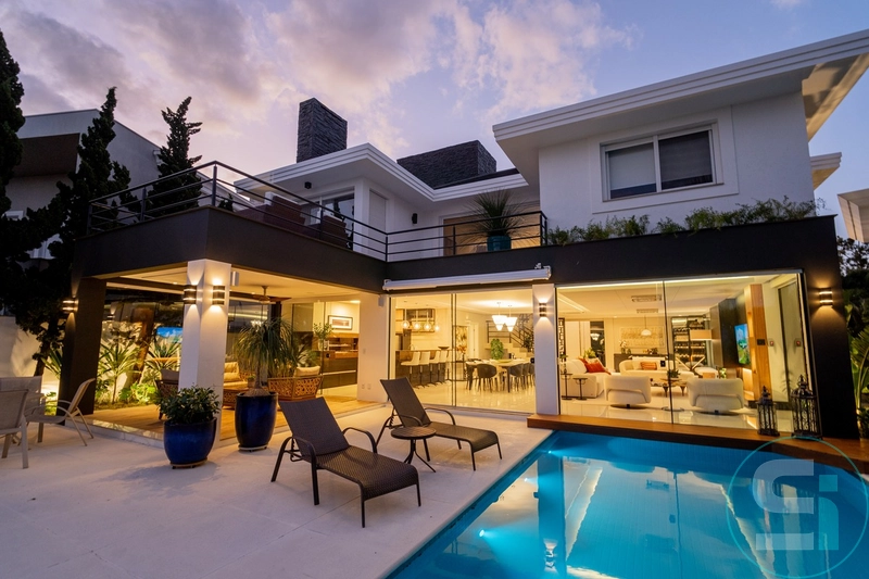 Magnífico sobrado com ótima localização e orientação solar. Mobiliado e decorado, composto por 04 suítes, living 06 ambientes, cozinha americana, dependência de empregada, lavabo, área de serviço, piscina, vaga para carros.