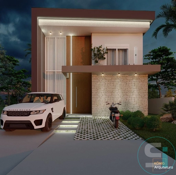 Excelente sobrado composto por 04 amplas suítes sendo 01 térrea, living integrado com lareira, lavabo, cozinha americana, tomada carro eletrico, espera sistema fotovoltaico, espera para água quente, esquadrias em alumínio preto automatizadas, churrasqueira, piscina, vaga para carros.