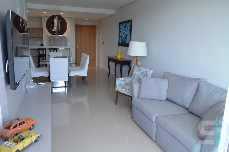 Excelente apartamento localizado em Atlântida, finamente mobiliado e decorado, composto por 03 dormitórios, sendo 01 suíte, banheiro social, living em 03 ambientes, cozinha americana, churrasqueira, área de serviço e duas vagas de garagem.