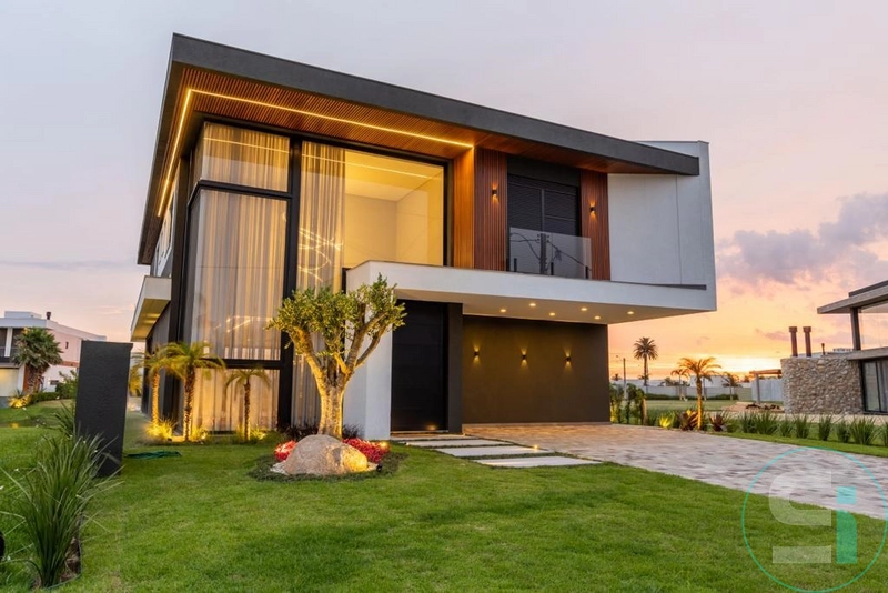 Belíssimo sobrado em condomínio completo na Praia de Xangri-lá, composto por 5 suítes, sendo 1 térrea, living 03 ambientes com lareira, cozinha Americana, espaço gourmet com churrasqueira, belíssima piscina de concreto e abrigo para carros.